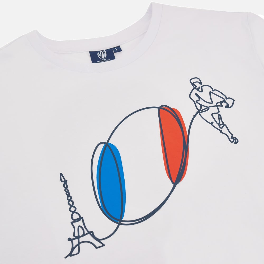 RWC M22/23 FRANCE COTTON POLY TSHIRT FLAG BALL WHITE